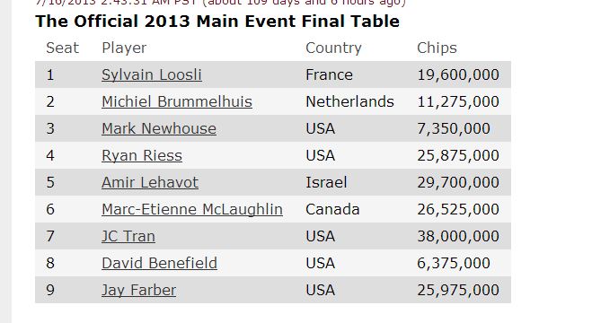 The November Nine, 2013 (link to video profiles of each, and here’s the WSOP home page with short profiles.